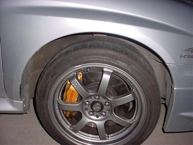 And, my ricy Camry (TRD POWAH!!!!!!!!11!!!!111) with two different sets of 15x6.5, ET40 Konigs. 205/50/15's, and I had to roll the rear fenders at stock height to keep from rubbing ;)