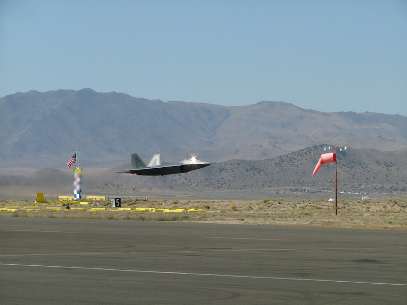 The Raptor really is amazing. When I saw one do a demo in Goldsboro a couple of years ago, his last sequence was to scream down the runway in a low pass, then stand it on its tail with full burners and simply disappear straight up. It took maybe 10-15 seconds before he was so high you just couldn't see him anymore. Incredible aircraft.