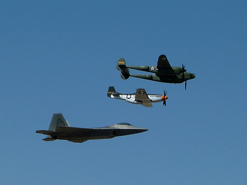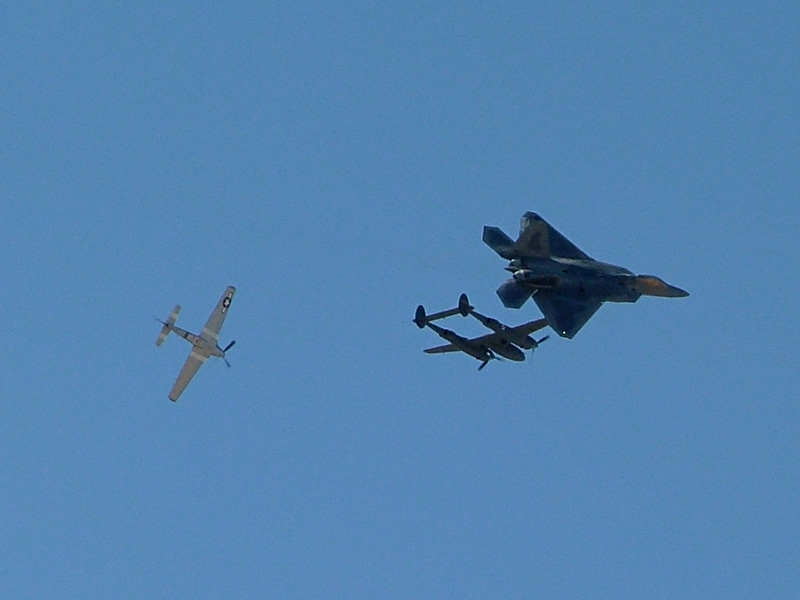 That picture of the F22, P38 and P51 is awesome...Scott, you should definitely go walk through the pits, it's worth it...