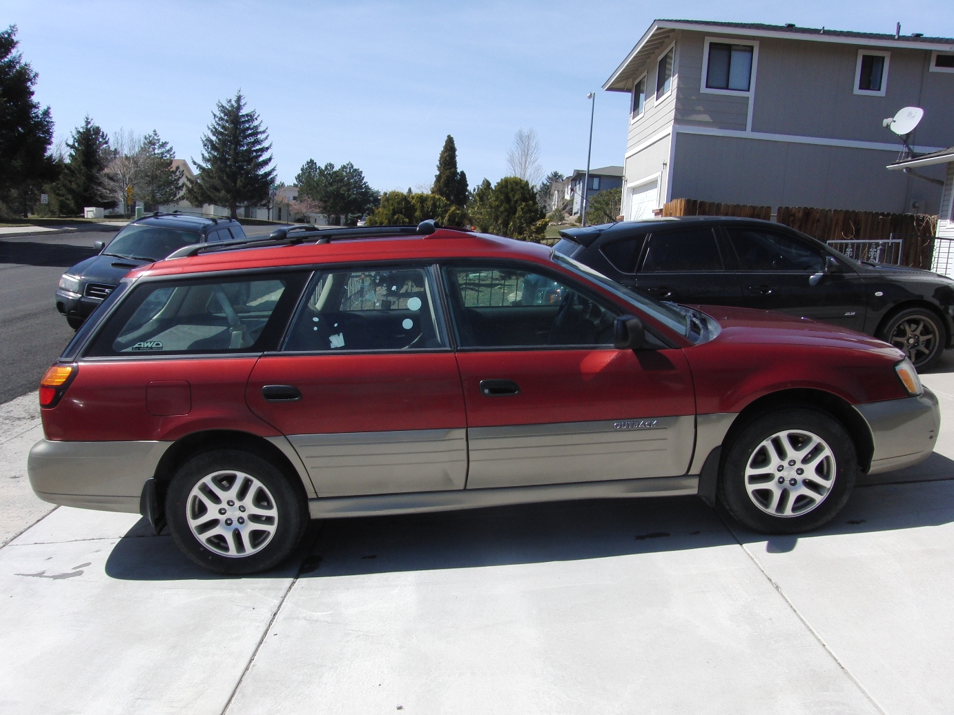 Located in Reno. 2004 Outback 5 speed, red two tone. 115k miles. Heated cloth seats, defrosters on the wipers and mirrors. Mechanically in excellent shape, with new HGs and timing bits. Cosmetically has some flaws. Dent in the rear hatch and one in the front of the hood. Also some scratches and tiny dings here and there, but nothing major. No rust.It was a kid hauler for the last 6 years, so there are some small stains on the back seats but overall the interior is in good shape. I bought this with a bad motor to keep as my DD, but an awesome deal came along on a Forester XT, so this has to go.