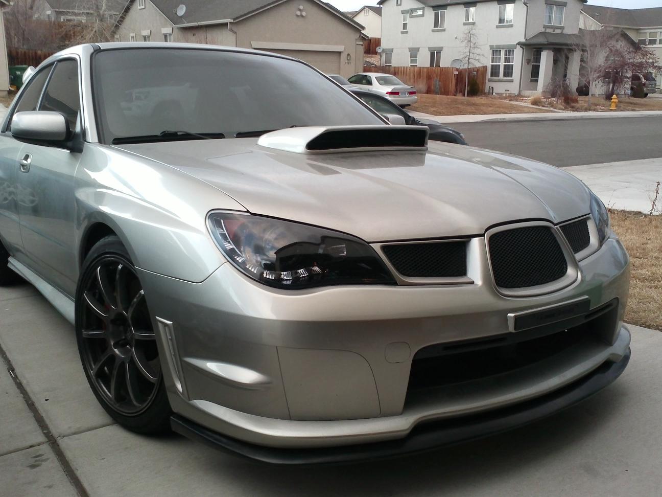 Well it does have an aftermarket top mount which requires a hood scoop last time I checked unless you want major cooling issues haha. My car has no stickers and no spoiler. The bigger scoop potentially allows more air since the surface area of my bigger intercooler is larger than the stock 07 by quite a bit. Also imo the 07 with the sharper front end designs on the grill are lacking something in the stock smaller scoop and I happen to like the larger one it looks more agressive. I have pictures coming soon. Its not like the bigger scoop is like going from a stock wrx spoiler to an sti one haha it is hardly even noticeable. So im not sure what you are confused about there Don? In your opinion if I want a sleeper should I have no hood scoop to achieve that look and chance overheating my upgraded setup lol?