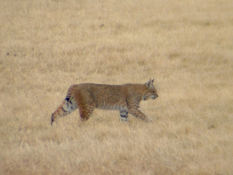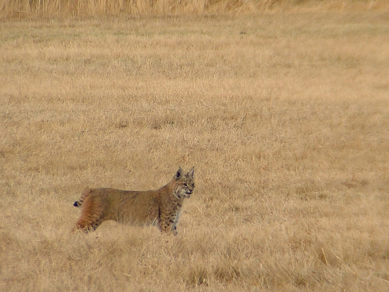 Here's another interesting one. It was in a field just down the road from my place where I see lots of coyotes, and was by far the largest example of it's kind I've seen around here. Lynx rufus is the proper name, commonly called a Bobcat.