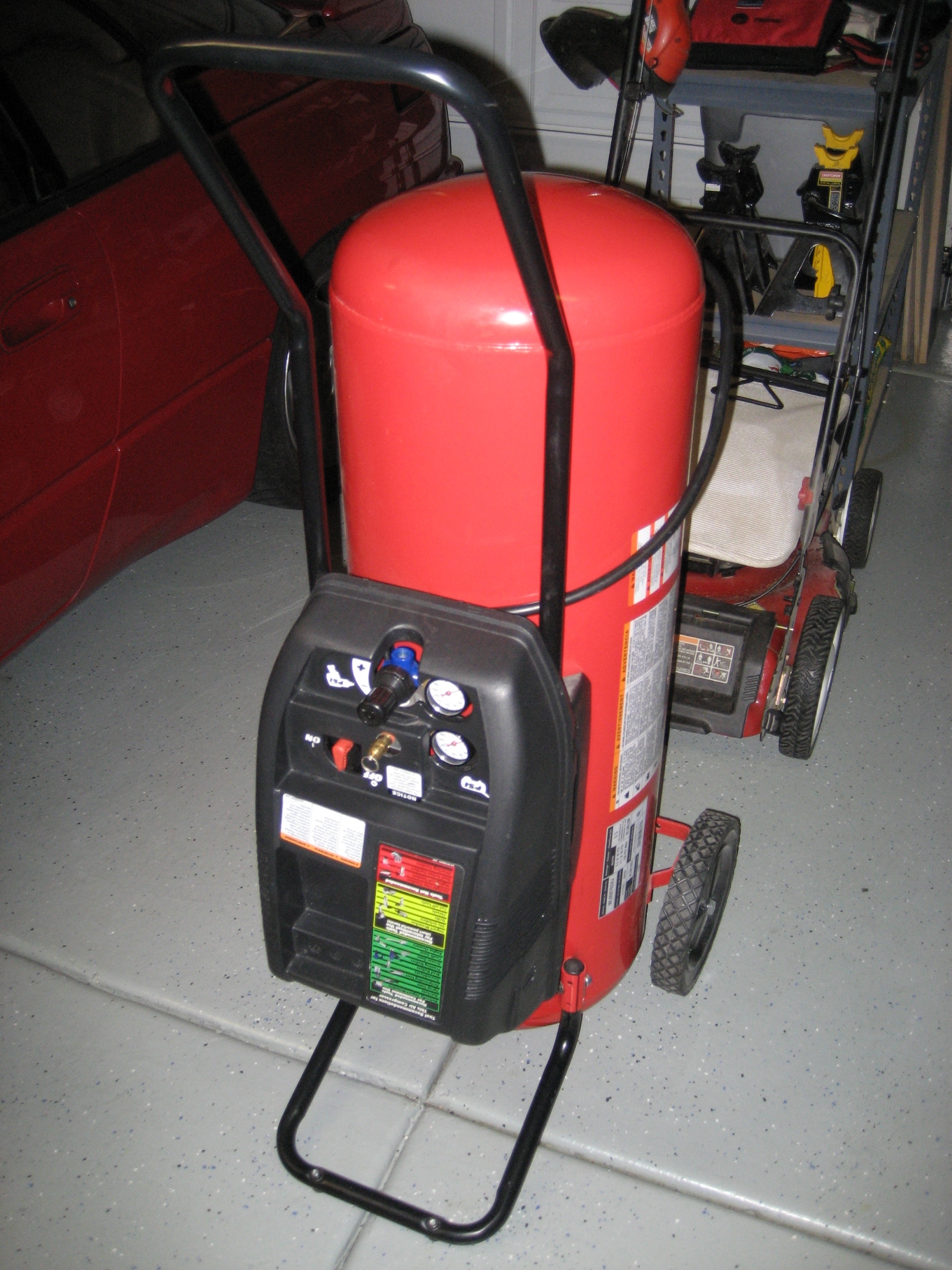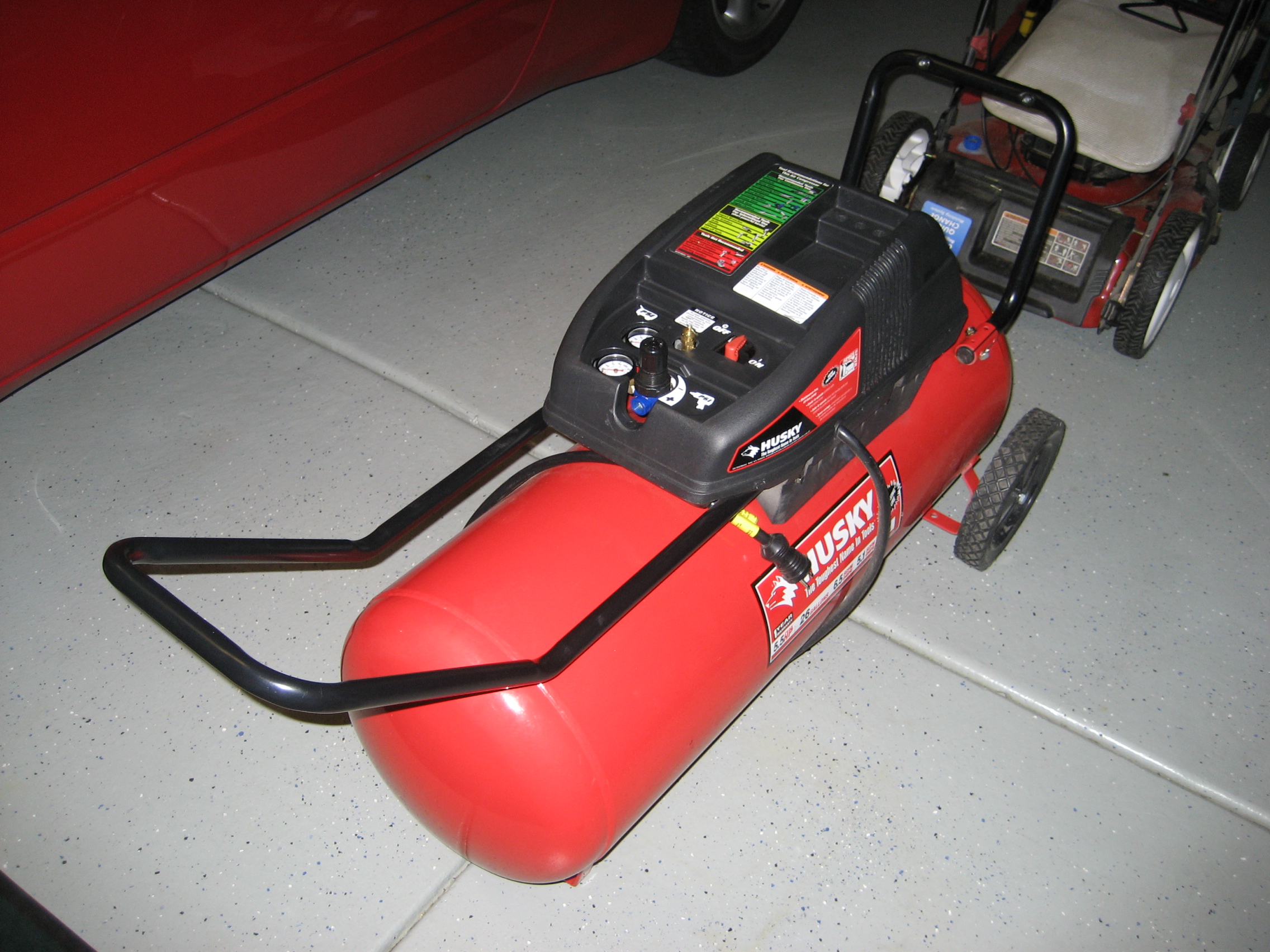 My 26 gal oil-less air compressor seized on me while finishing up work on the SVX last weekend. I just picked up a new twin cylinder 30 gal compressor I figured I'd sell my old one for cheap. Perhaps someone would be able to rebuild the compression piston (I think the motor is fine), or could just use the 26 gal tank for something.