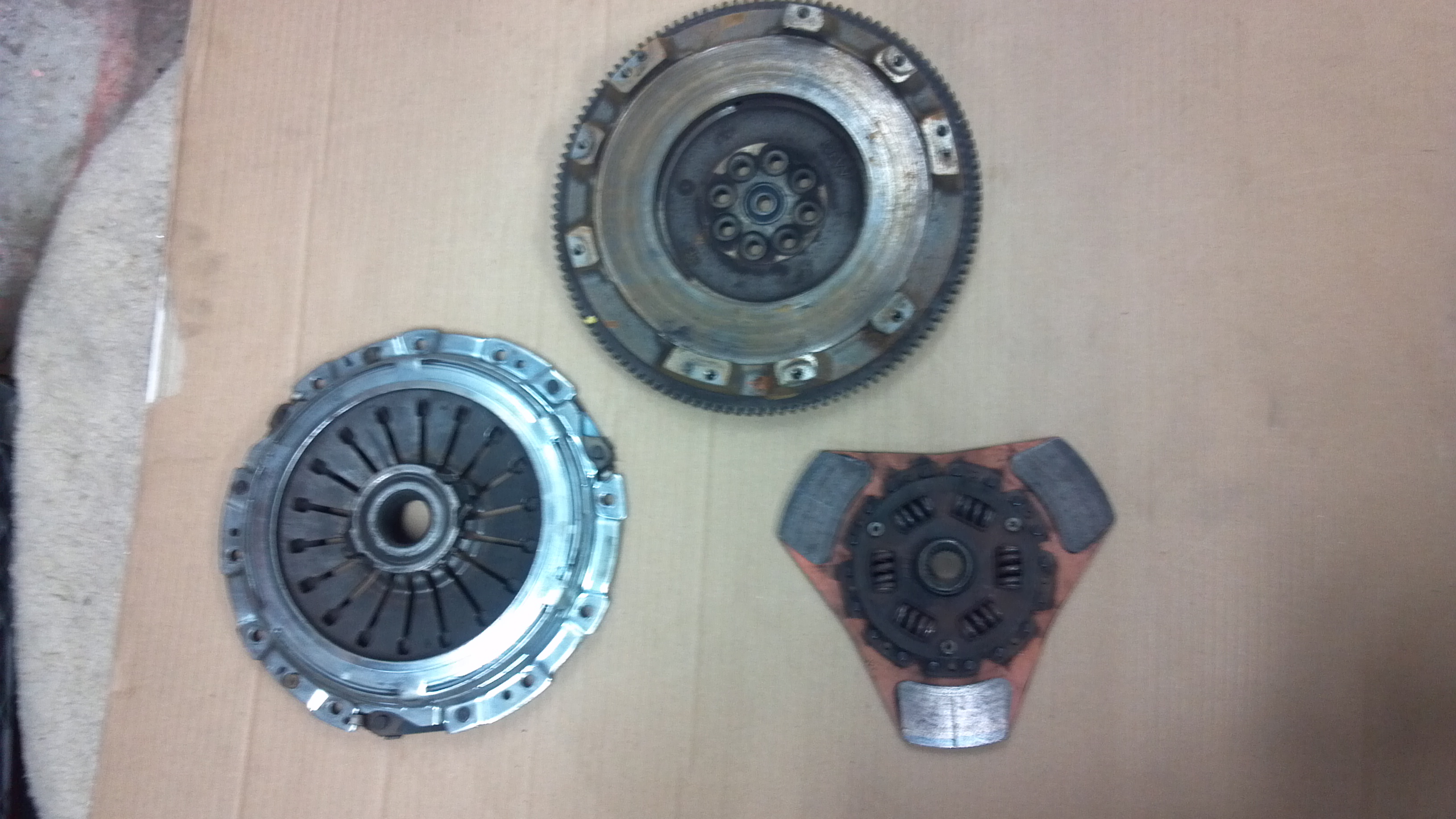 Used excedy stage 2 clutch. Used. Still has some life and comes with pressure plate, clutch disk, and oem flywh