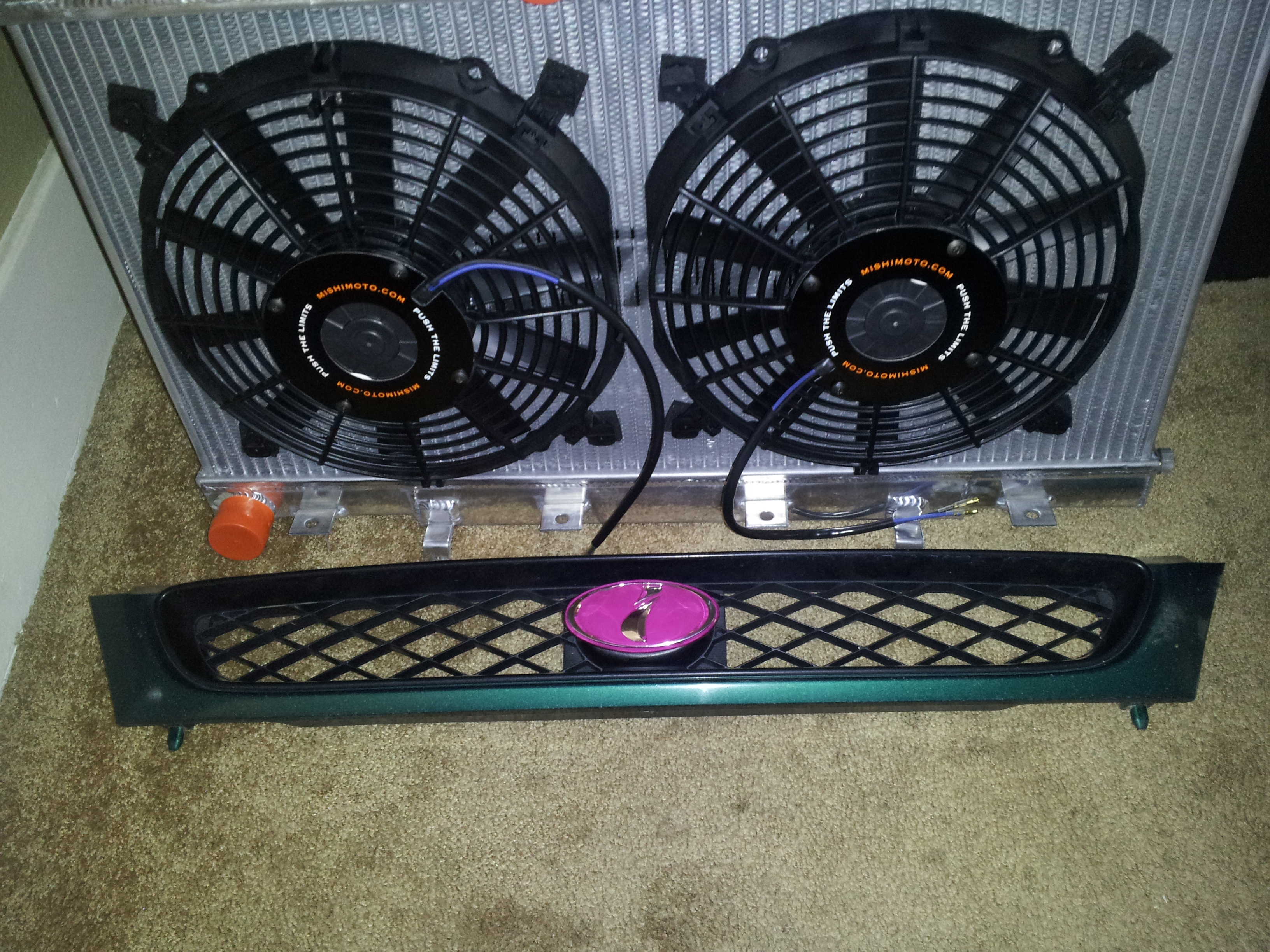 The badge doesn't fit just right, but it will work. New radiator and fans too! The badge looks off center because of the camera angle, but looking at it straight on it's good.