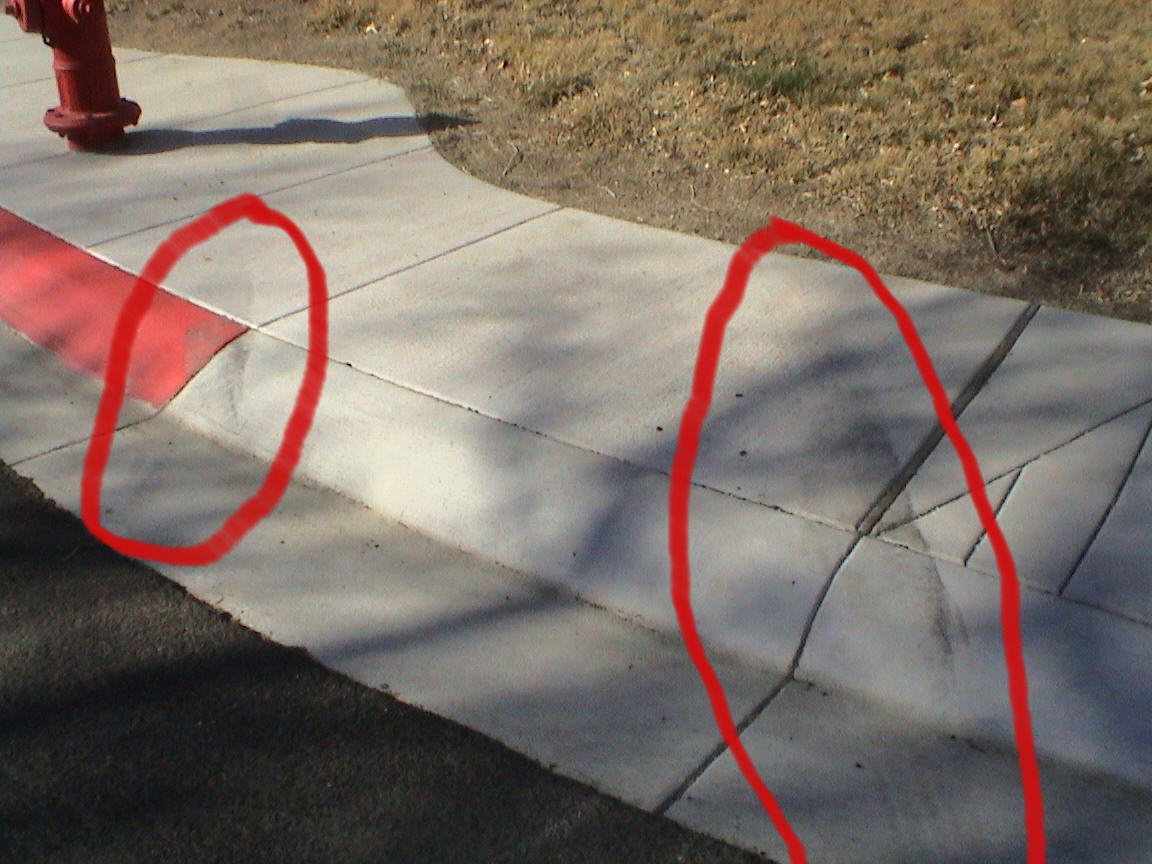 Yea. I took these today, so most of the skid marks and grass marks are gone. Mike must have someone that likes him up there, because he barely missed the tree and fire hydrant. :shock: