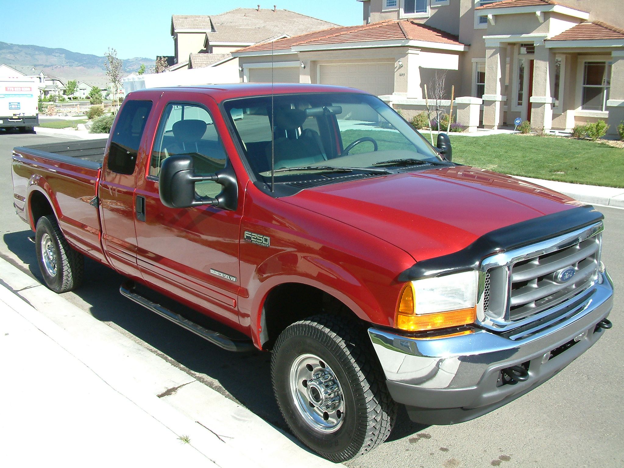 Yesterday I picked up a 2001 Ferd F-250 Superduty! 7.3L Powerstroke Diesel 250 hp 505 ftlb 3300 rpm redline Long bed (this truck is ginormous) 4WD only 51,000 miles! The only thing wrong is that it's red. So much for blue > red... looking in my drive way, apparently 2red = blue. The only question now is whether or not I rent a U-haul trailer to go to Hawthorne or not... there's no way I can buy the trailer I want in time to leave Friday night. Two more things: first, it's weird driving a vehicle I actually fit in w/ room to spare; and second, Subaru rubber floor mats almost fit in a Ford truck if you swap driver and passenger sides and rotate one of them 180deg.