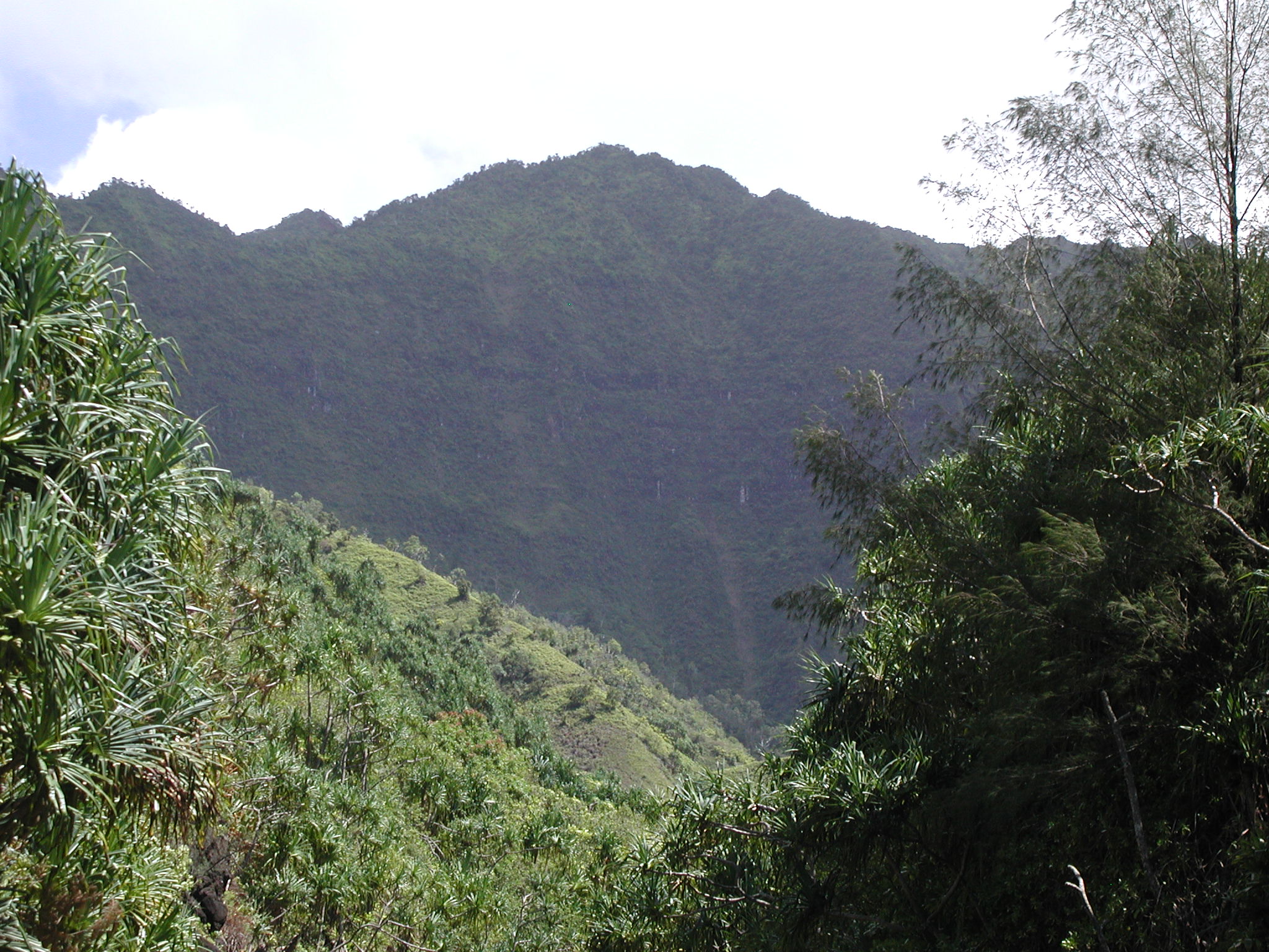 Anyway, here's a few pics... "Spouting Horn" where the water from the break comes up and shoots out of a hole in the rock above, mountains, canyons, and a pic from the "trail" we hiked! Those rocks are MUCH bigger than they appear. It was no leisure walk!