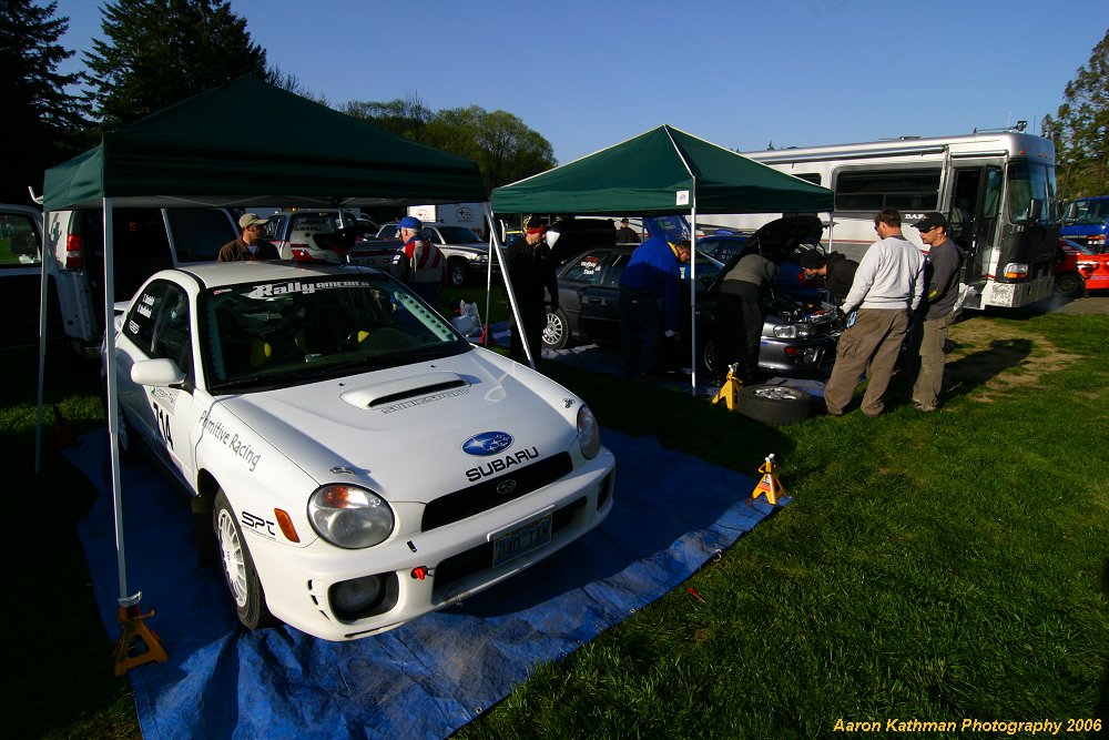 The car was setup for RallyAmerica racing by AllWheelsDriven located in Bend Oregon. Full FIA approved Cage by GrinDesigns also in Bend Oregon. Rally computer and Combox by TerraTrip. Braided Steel Brake lines, racing compound brake pads. New wheel bearings all the way around. Custom exhaust down pipe by Full Throttle Performance, Fully adjustable rear wing (new install) By Kaminari aerodynamics. Factory short shift kit for the 5-mt transmission, new custom radiator and Perrin Intake. Front and Rear skid plating by Primitive Racing.