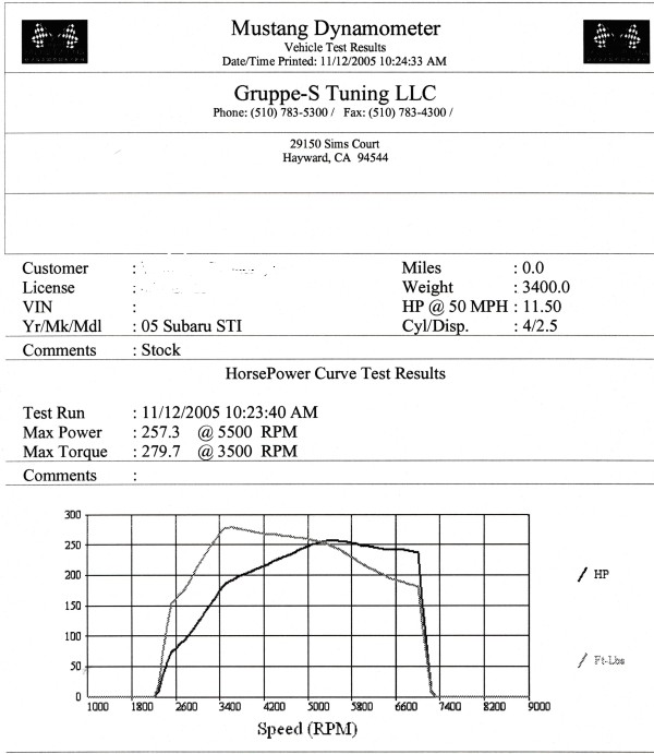 If you are an active club member and I missed yours, repost in the right format or point me to it please and I will add it. Mike, Did you get a Dyno chart now that you went back to stock exhaust, etc? I am not going to add all this laptop dyno stuff except stuff from Ed which is fairly realistic. My guess on some of the other stuff is they are just putting in the dry weight of the car, not the curb with driver weight. If you don't know what your car weighs, get it weighed. On a quiet day, some places that weigh trucks and such like the recycling place will tell you if you ask nicely. (Note where your gas level is)