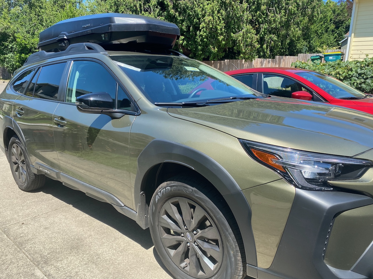 I’m finally back in a Subaru. A 2023 Outback XT. Wonder if I can get a WRC Spoiler for it.