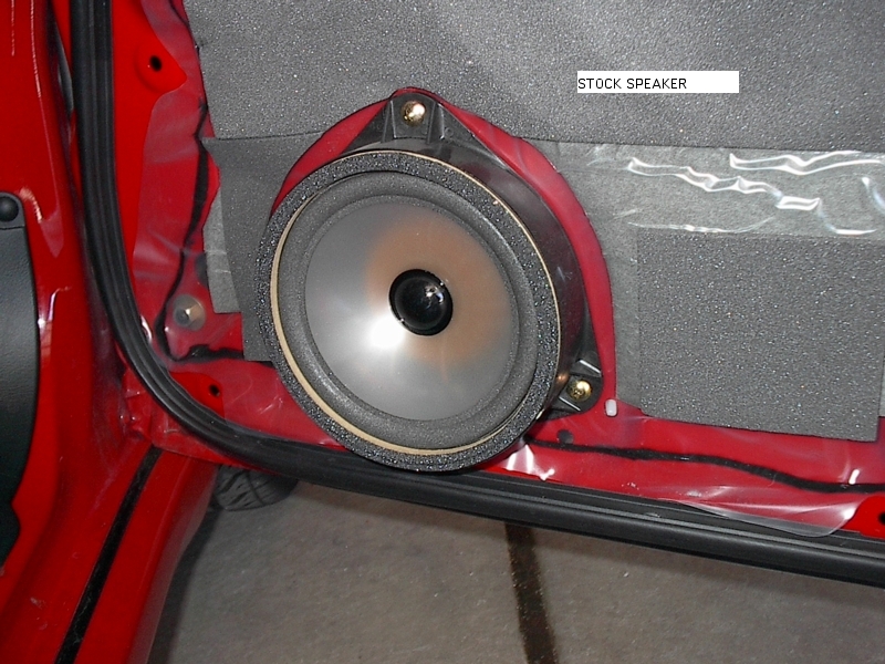 So I was feeling ambitious today and decided to replace the stock speakers in the front. I had allread previously ordered the thick spackers 6.5 spacers from www.iaperformance.com ($37 with shipping). So I preped the spacers with flowable silicone to form a tight seal between the speakers and spacer and the spacer and the door panel. Let me just say that the actual removal of the door panels and installation was the easiest I have ever done. The job took me no more that 2 hours (Including the trip down to Kragen to get some spade connecters). Well anyways I had some top end Boston rx67 6.5 speakers from my previous vehicle (In fact I have two sets, mabey I'll try them for the rear doors, although I'll have to fab up my own spacers). Anyways the sound is great (here's the pics of my install). The space between the speaker magnet and the window is probably less that 1/8 in (so dont try to install deeper speakers with mounting depth more than 2in using the spacers i used). I just checked the clearance between the panel and the speaker (didn't make any measurements) but the spacers included longer plastic clips to move the door panel out further if needed (however I didnt use them). Questions? Comments?