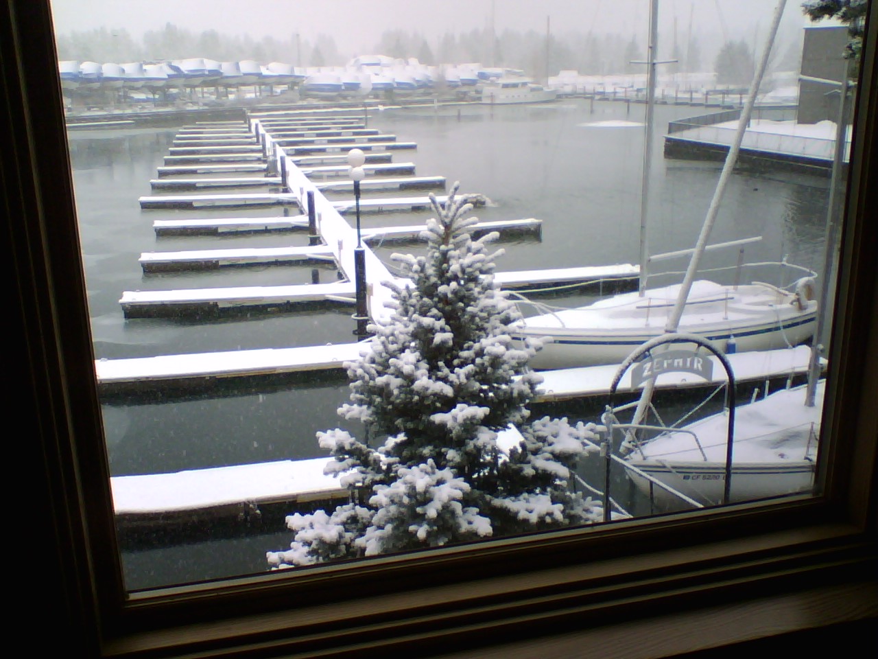 Its snowing pretty hard up here today.