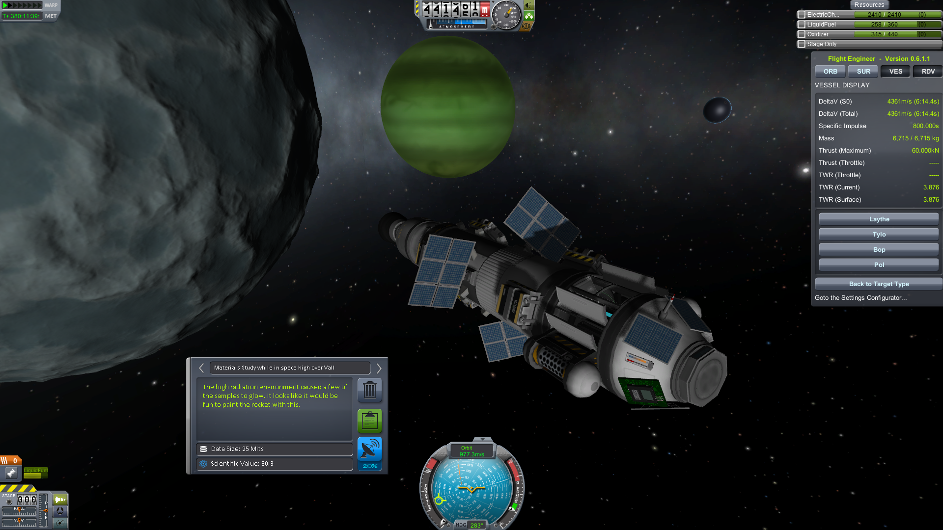 On a different note I did a slingshot around Kerbol with a probe to launch it out of the system. It easily hit escape velocity and it's still going, off into the ether.