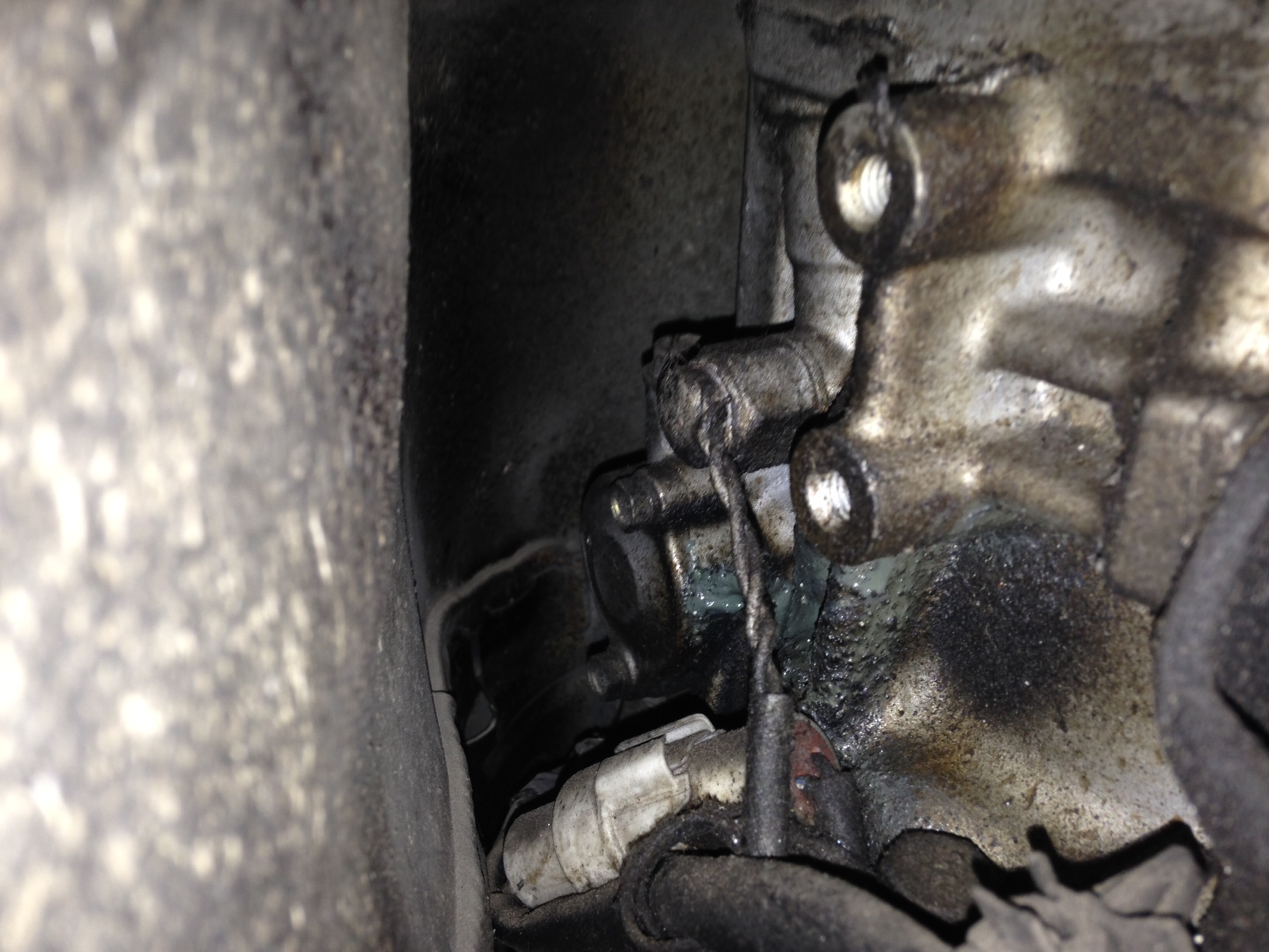 So the top picture is from under my car. The angle is kinda weird so I put an arrow to show where im looking. Has anyone experienced this before? It seemed like a really weird spot for a leak to me.