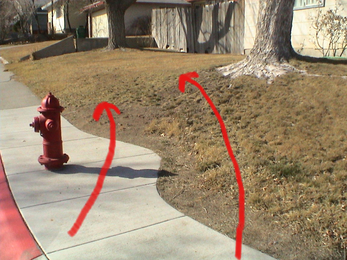 Yea. I took these today, so most of the skid marks and grass marks are gone. Mike must have someone that likes him up there, because he barely missed the tree and fire hydrant. :shock: