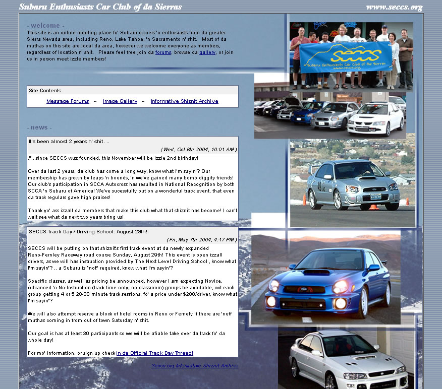 I really liked: "Thank yo' ass izzall da members that make this club what that shiznit has become!" What?