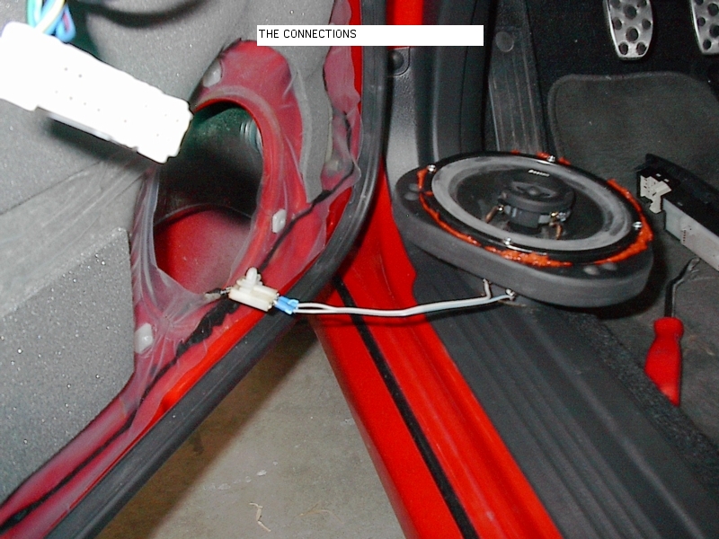 So I was feeling ambitious today and decided to replace the stock speakers in the front. I had allread previously ordered the thick spackers 6.5 spacers from www.iaperformance.com ($37 with shipping). So I preped the spacers with flowable silicone to form a tight seal between the speakers and spacer and the spacer and the door panel. Let me just say that the actual removal of the door panels and installation was the easiest I have ever done. The job took me no more that 2 hours (Including the trip down to Kragen to get some spade connecters). Well anyways I had some top end Boston rx67 6.5 speakers from my previous vehicle (In fact I have two sets, mabey I'll try them for the rear doors, although I'll have to fab up my own spacers). Anyways the sound is great (here's the pics of my install). The space between the speaker magnet and the window is probably less that 1/8 in (so dont try to install deeper speakers with mounting depth more than 2in using the spacers i used). I just checked the clearance between the panel and the speaker (didn't make any measurements) but the spacers included longer plastic clips to move the door panel out further if needed (however I didnt use them). Questions? Comments?