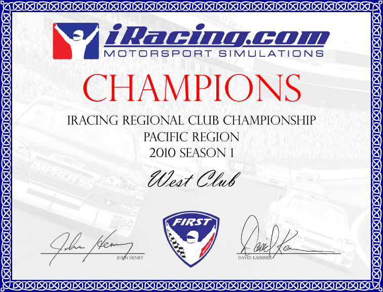 Well... that was easy. Ran only 5 races in the season, didn't win a single one, and took the Club Championship for the West club. I guess there's not a lot of competition in NV, UT, AZ, etc.