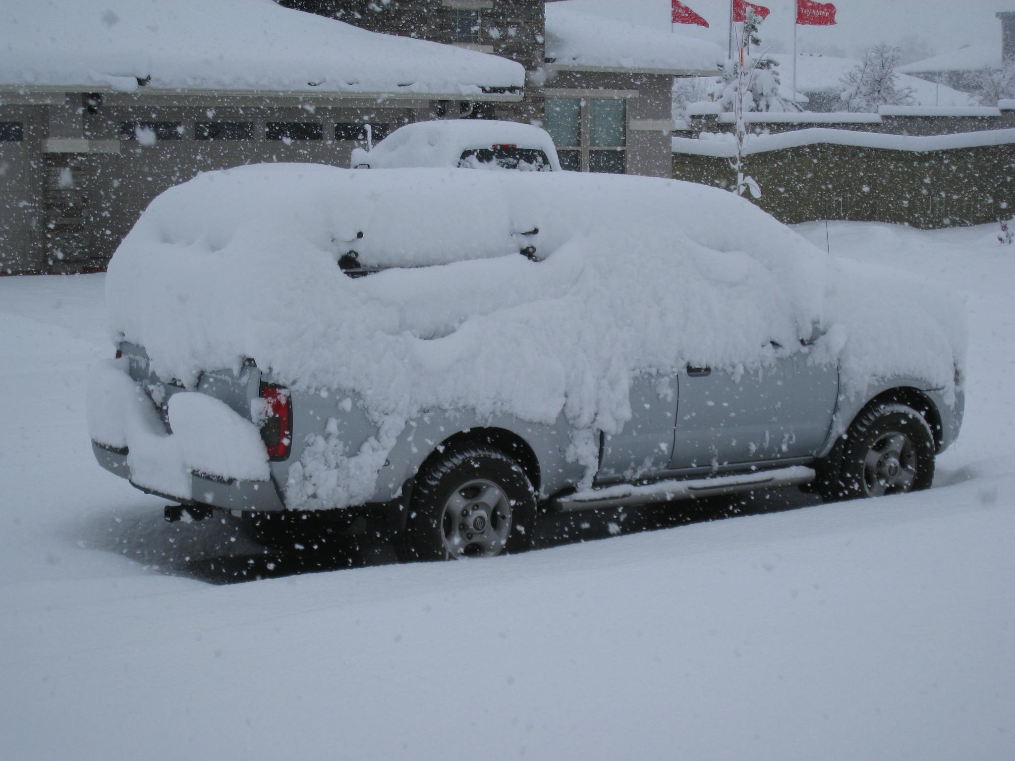 Carrie and I just shoveled the driveway so I can take the FJ out for some fun (and a store run)1' of untouched fresh snow everywhere = fun driving this morning. We measured 12"!!! in Spanish Springs... When I went to bed last night it was snowing heavily but I thought it would let up. Wow! Funny thing, yesterday I was doing yard work in shorts and a tshirt in the morning, you can see my wheelbarrow where I left it, oops...