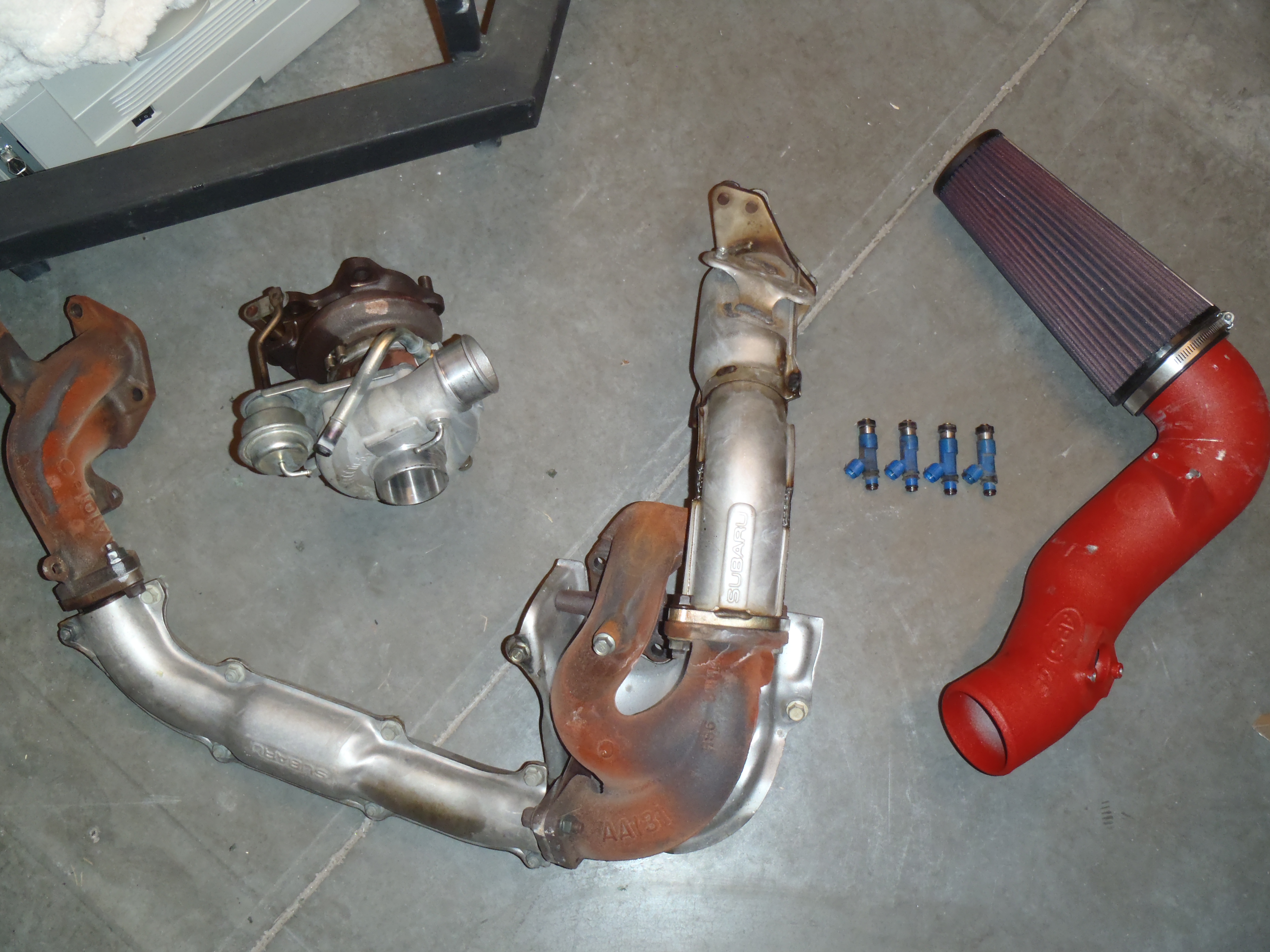I have a few parts off my stock 07 Sti for sale and an aftermarket cold air intake. Turbo, injectors, header, and APS cold air intake. Let me know if you are interested in any of these and I will get you a price. Cash only.