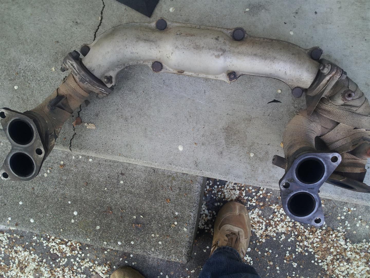 Here are pics of my old manifold vs. the new one. The heat wrap on the OEM one would be in better shape but years ago I was installing and uninstalling the manifolds a lot and ripped it.