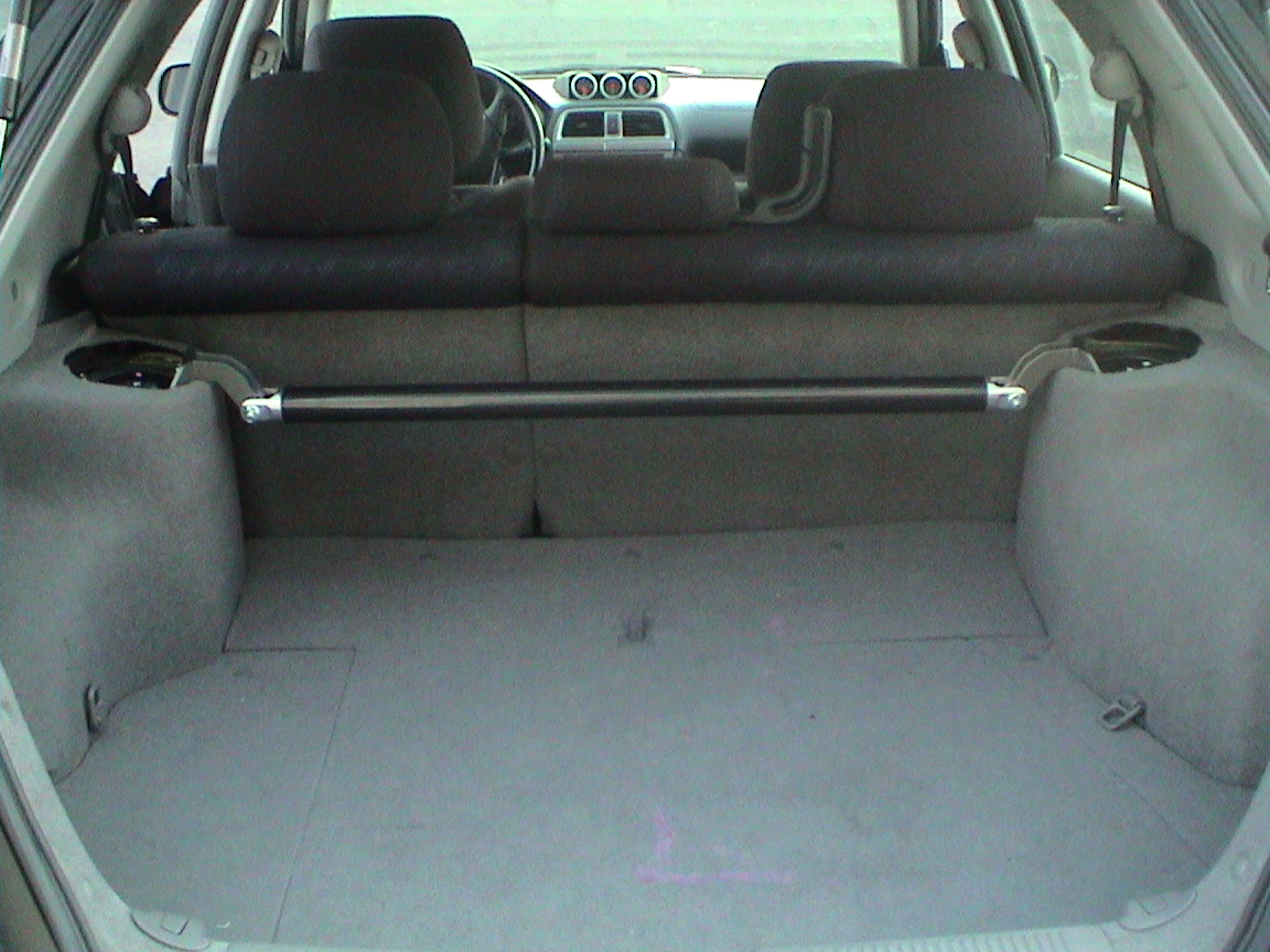 Hey Art... how's the rear-end feel w/ the bar? Oh, somewhere there's instructions for trimming the strut tower covers so they fit with the bar in there. Also, I'd be interested to see if some bicycle tire quick-release bolts would work in there to hold the bar on... that way you don't need tools to pop it on and off for cargo.
