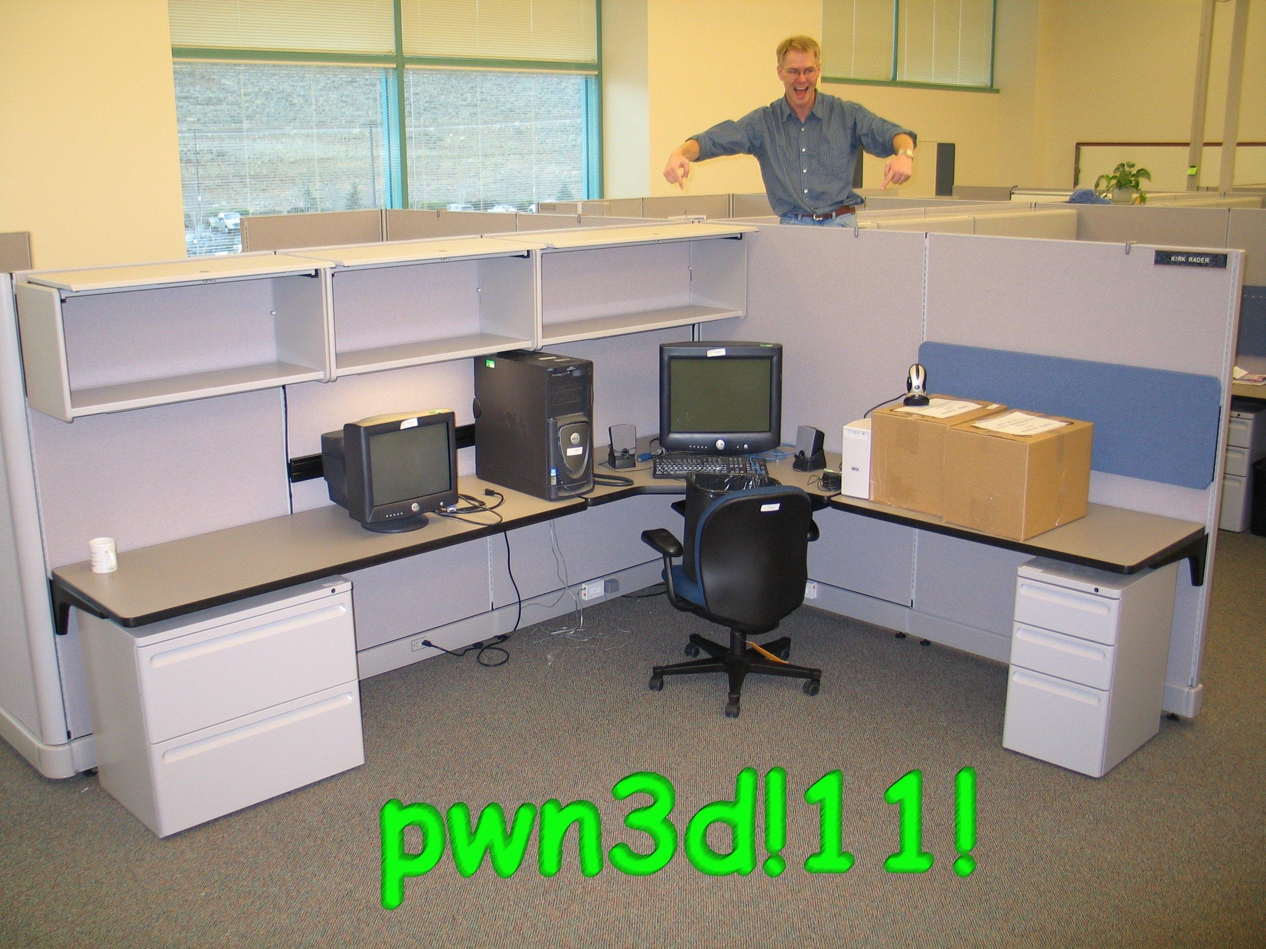 Then next time he's out of the office & after the cubicle walls have been re-installed, you could do this:
