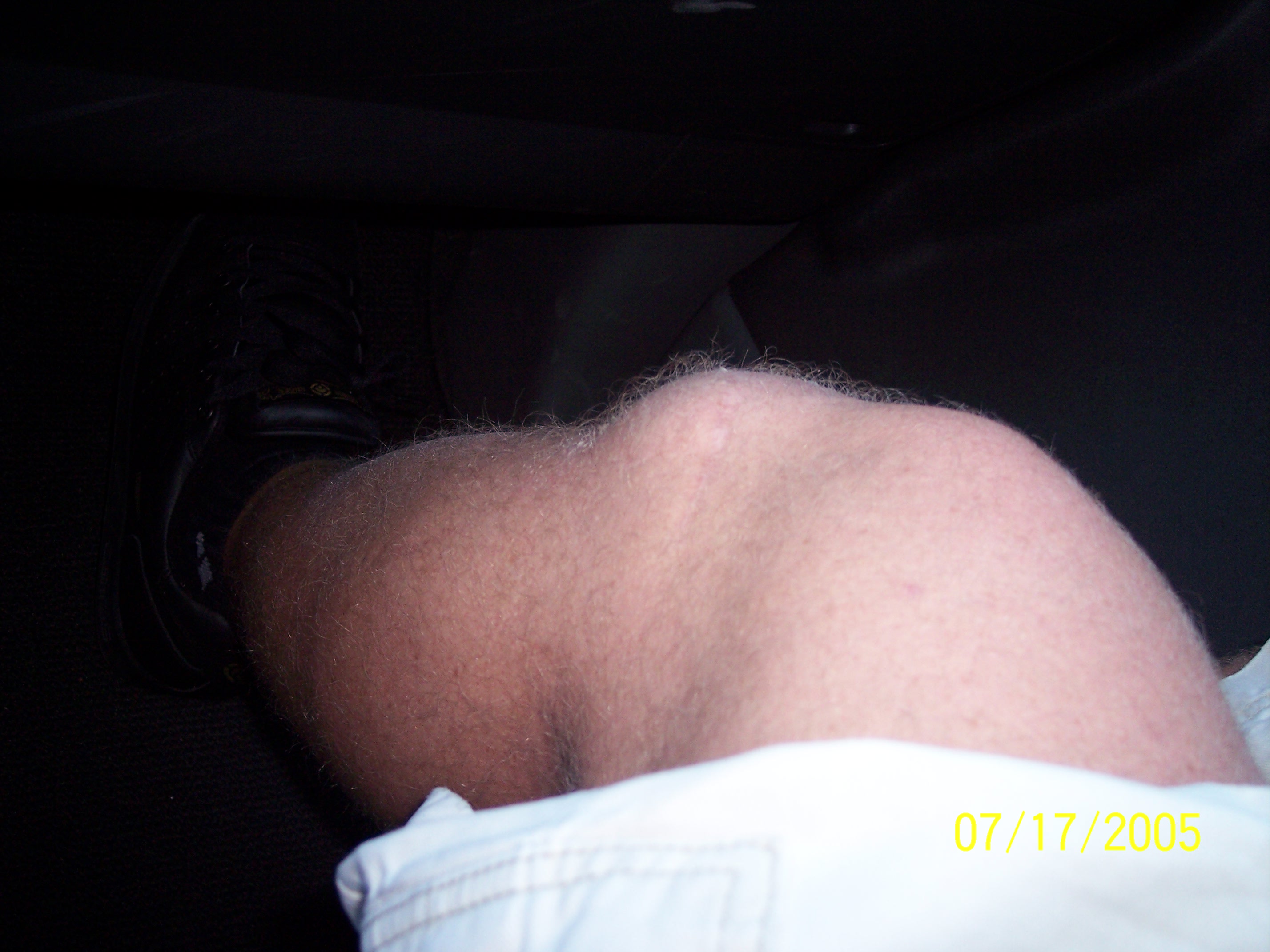 That's a good example why A 35yr old boy shouldnt still ride a skateboard you really get hurt. Zack and I had a early morning session because of the heat when I got home I was packing the Sti for Autox and Zack was alliing over my spare that I had taking out of the trunk it look easy enough so I tried it. I landed it few times and then wham I really do not know what happenned next thing I know my knee is the size of grapefruit and Im in a shit load of pain! So i get in see my Orthapedic(sp) yesterday He says you have a serious problem your knee has been grinding against bone exposing the scews you have in your tibia platue you need a knee replacment so he recomended me to a Dr. in sac to scope the knee to see what is what I will keep you guys in the loop and teel you whats going on.The only thing good aboout this is the parking I will get out of this