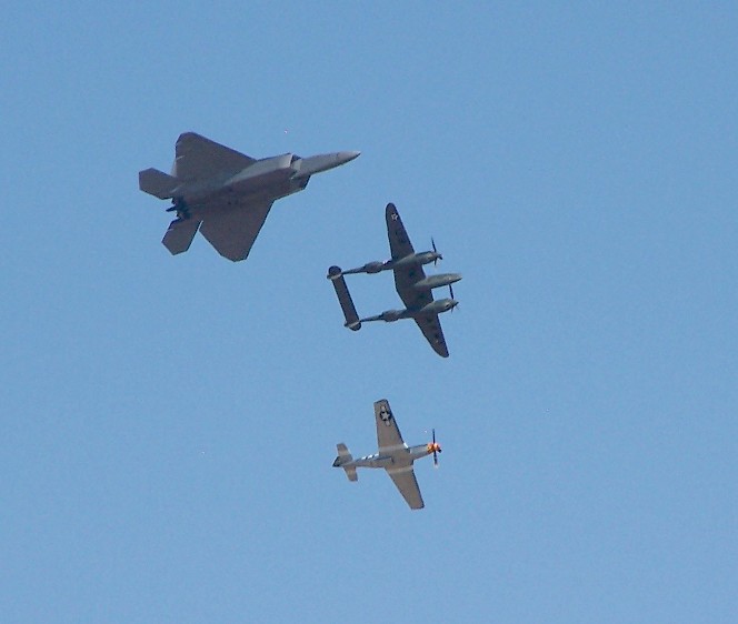 That picture of the F22, P38 and P51 is awesome...Scott, you should definitely go walk through the pits, it's worth it...