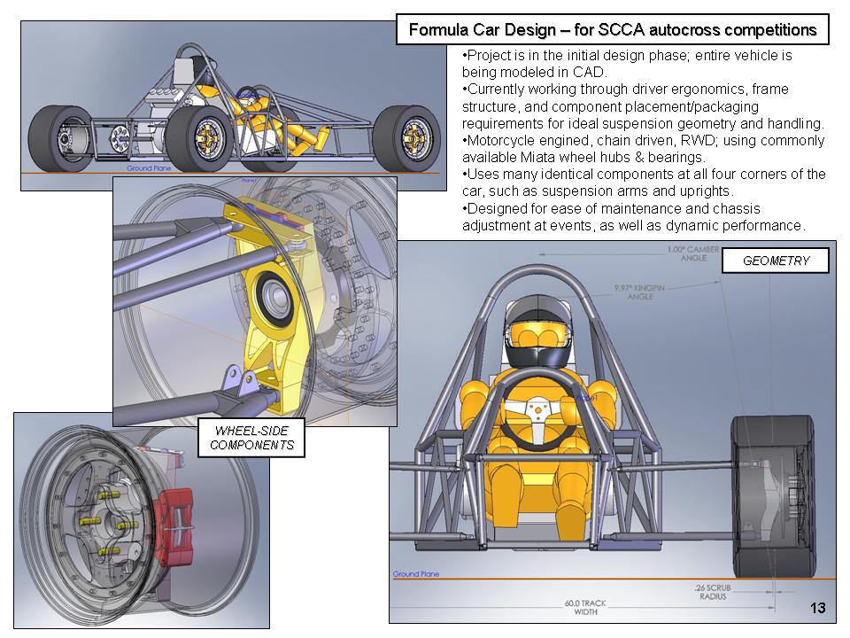 I thought about going all out and doing a F1000 design, but I couldn't find a good 1000cc engine model out there and I doubt my computer right now has the juice to model all the bodywork/wings and run CFD anyway. All the parts models would adapt to a different rules set & engine pretty easily though, so maybe down the road sometime.