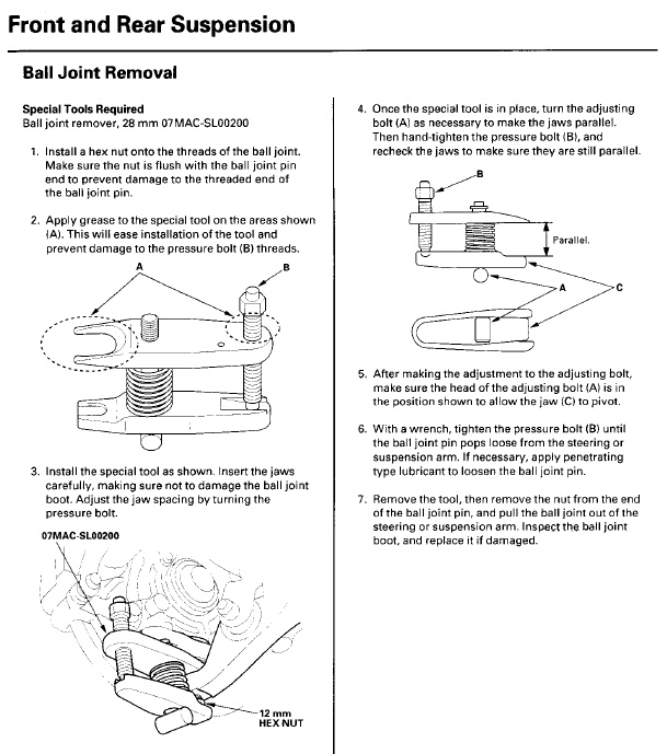 I would recommend unbolting the lower balljoint from the upright rather than pulling the balljoint out of the control arm. Much less work and risk of damage by unbolting from upright. Unless, of course, the balljoint is damaged and needs to be replaced anyway.