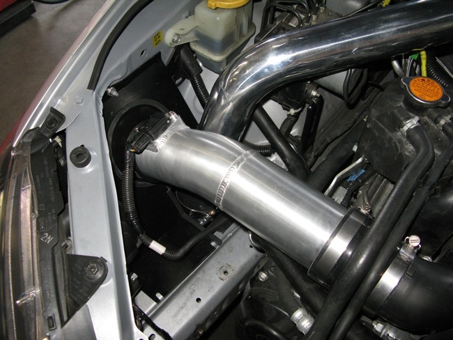 First I would like to extend a big thank-you to Bobby and John Marley (" marleyjb ") for letting me use their 2008 STI on numerous occasions for measurements and fitment trials. A lot of you have met them and know they are a super-nice couple and certified car enthusiasts. Not only did they trust me to drive and wrench on their STI, but Bobby took pictures, and John held the flashlight for me on more than one occasion. Thanks very much you two. The first basic intake ("Type 1") is shown below. It comes in three MAF sizes: