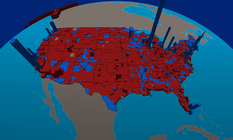 This election may have been close numerically, but geographically it was an 83% - 17% landslide.