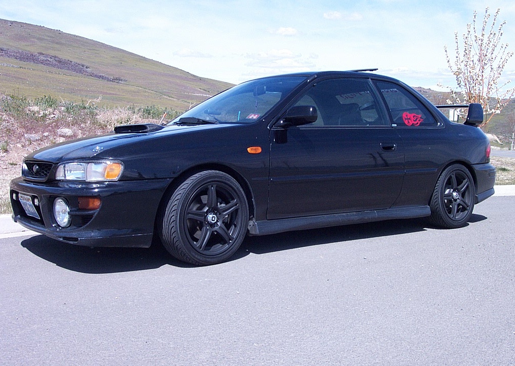 Okay, here's an old one of the WRX, and a new-ish one of the SVX. I left my camera in Reno, so I'll have to wait a bit before I can get a new picture of the WRX.