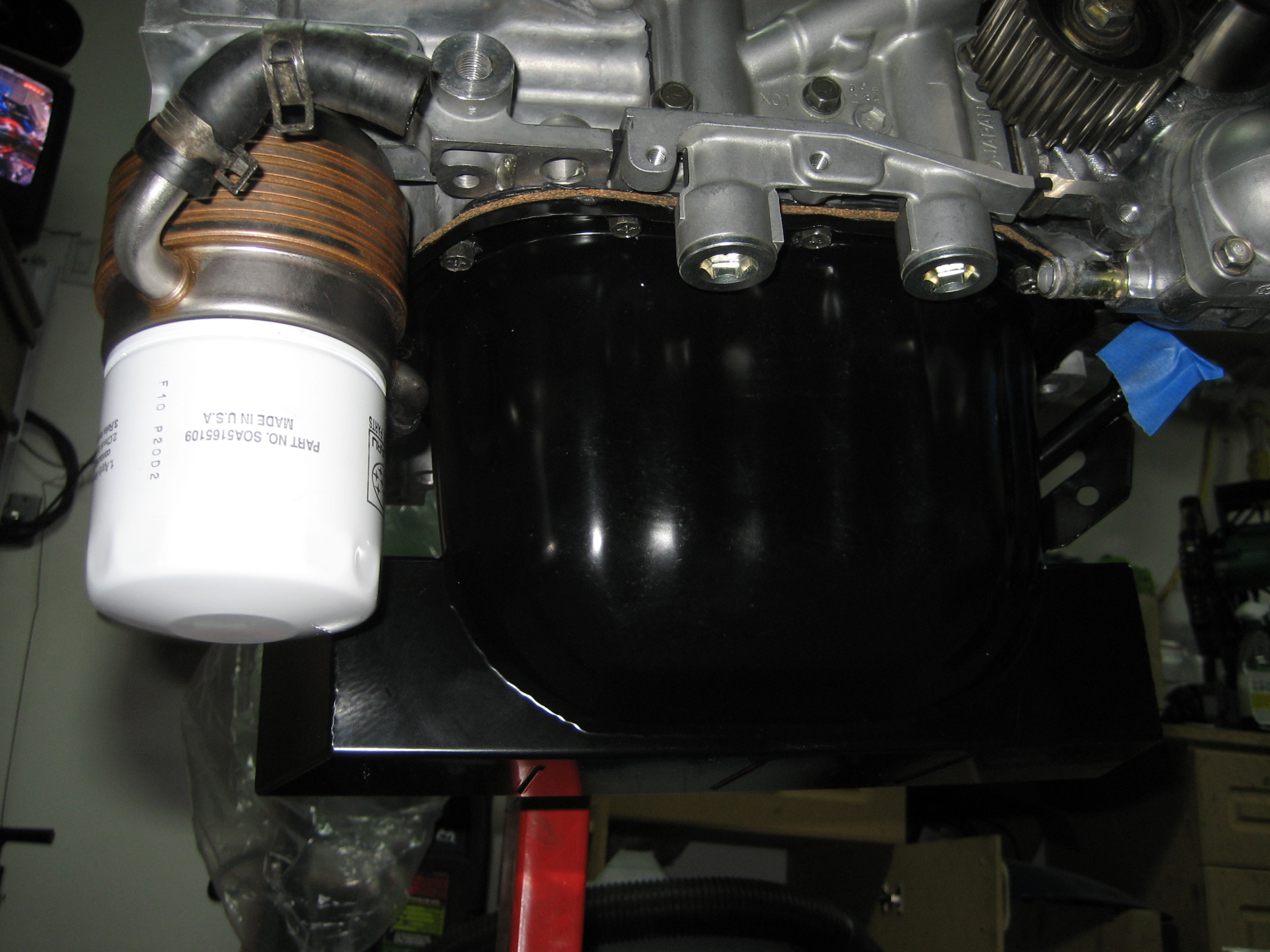 AIMS was able to save my crank, plus the cylinders were fine after honing. I picked up the assembled shortblock earlier this week, and dropped off my heads for cleaning and inspection. So, I should have them back early next week. Also my Cosworth oil pan and baffle showed up today from GST (thanks Mike!)... that pan is the pimp shit! And last week I picked up MikeK's FP Green, so I've got the turbo damage covered.