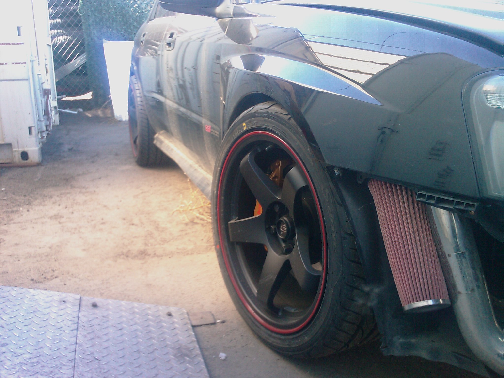 dang...nice rims!!! Are those the Rota P45R's? Saw an article in this month's Subiesport of a GC with those rims and 240sx flares...awesome