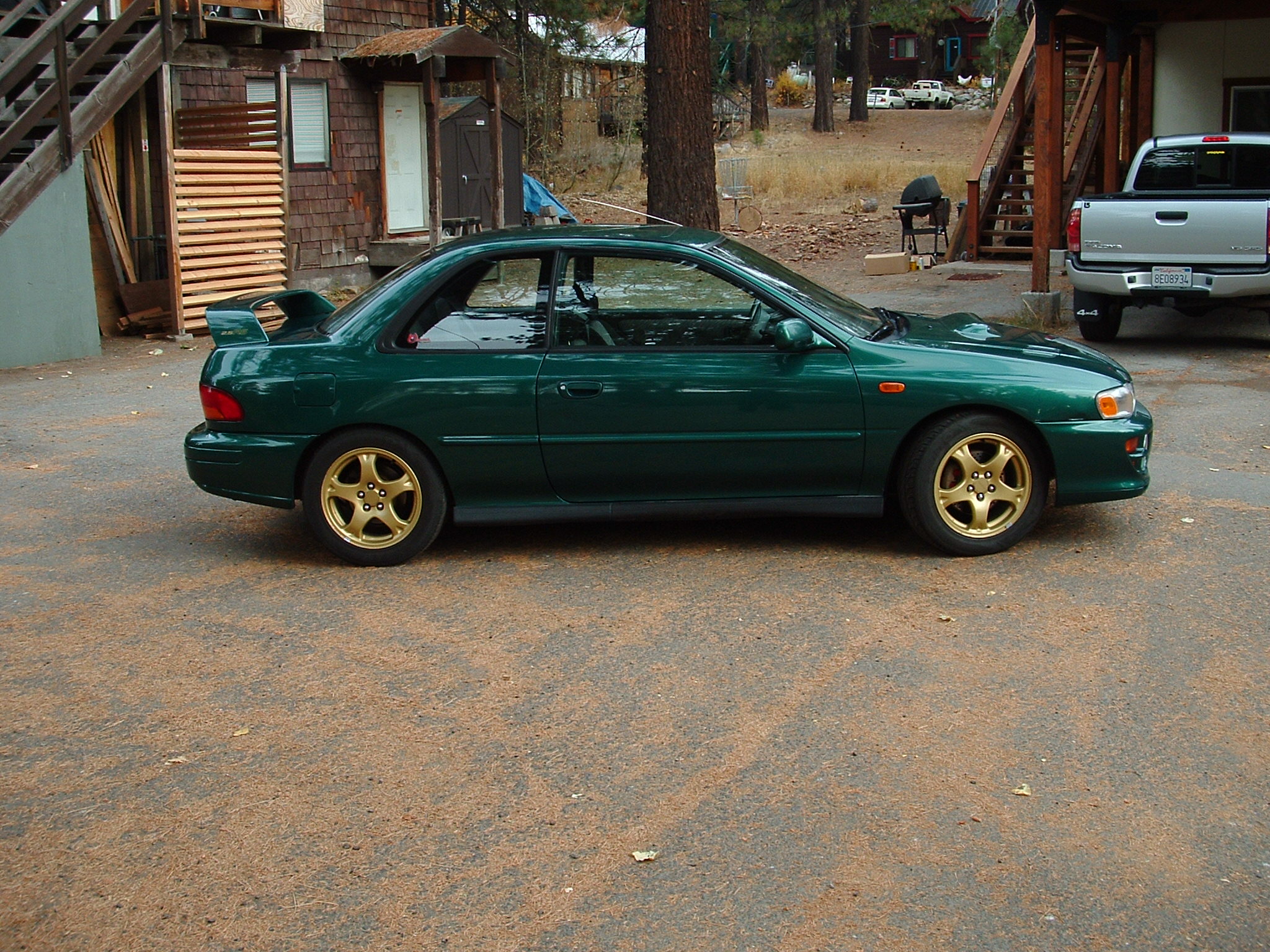 Anyone is welcome to come up for a drive. We can go up old highway 40 to Sugarbowl. I've got a guy coming up from Fresno to check it out today at 3. It handles very well, really tight. It's definately not as fast as a wrx, but it feels pretty quick. The handling makes up for it though.
