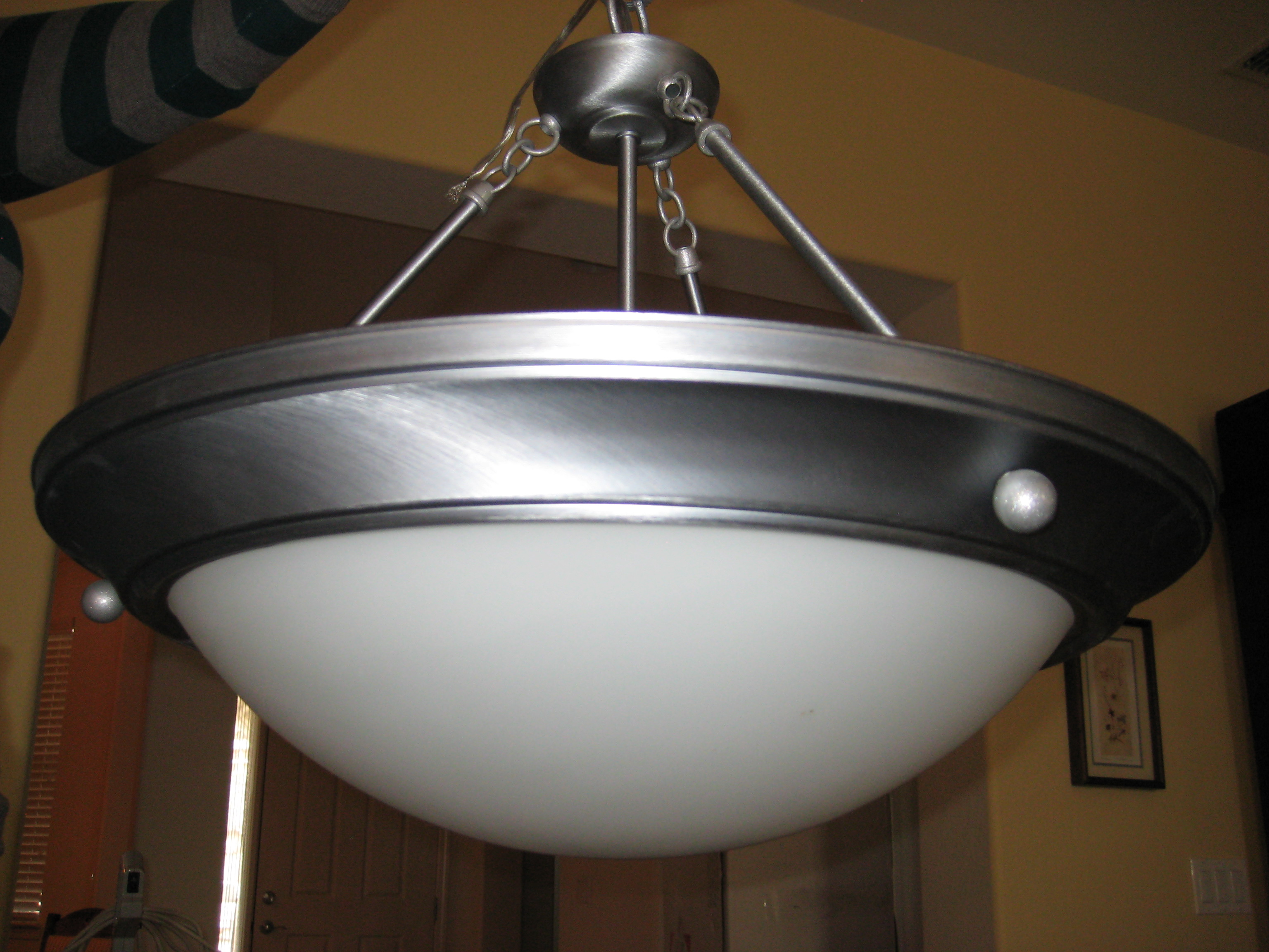 Since we've swapped out most of the lights in our house, we've got 5 matching brushed nickel lamps/chandeliers for sale.