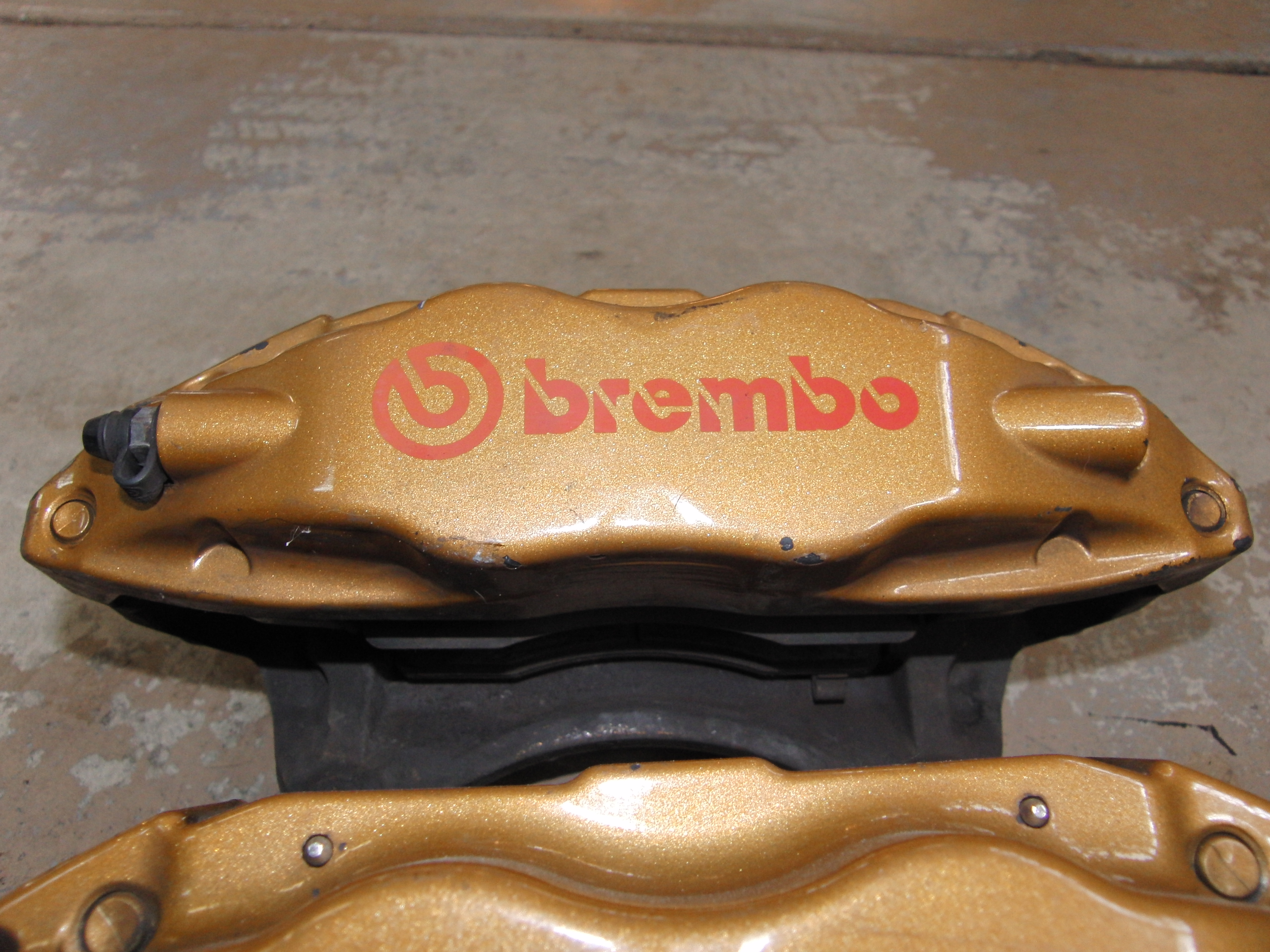 Pics to come later today. Will ship these, but not with rotors. Buying new ones isn't that much cheaper than shipping them. The pads are Hawk Ceramics IIRC. Pretty good condition, but not perfect. Some paint chips.