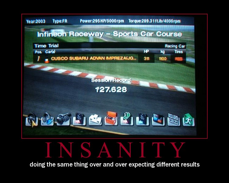 Looks like someone's getting fustrated trying to beat my time in the GT4 challenge.