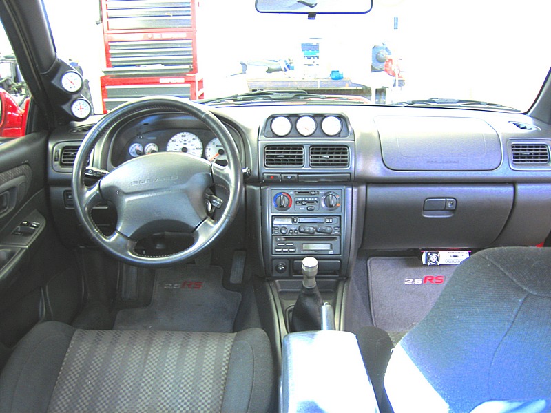 2000 rs, red (like dean's car) coupe, super clean. EJ257 short block with single cam heads, stand alone EM, FMIC, Fuel rails and injectors are changed, (dunno what brand) Airflow research turbo swap, (stamped "AR06" on the housing) coil-overs, (appear to be GC's) 5-zigen rims, full exhaust.