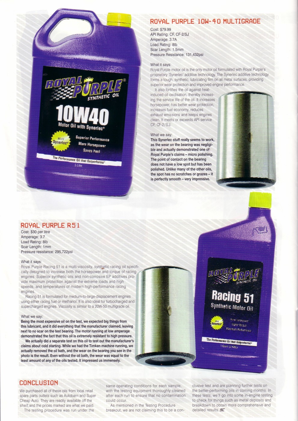 Yah, lots of spun bearings, but everyone on the forums use M-1 so it could just be a coincidence. I switched over to Royal Purple after reading the test results below and I got a good deal on a couple cases shipped to me. I'm running 5-30 in the winter and 10-30 in the summer.