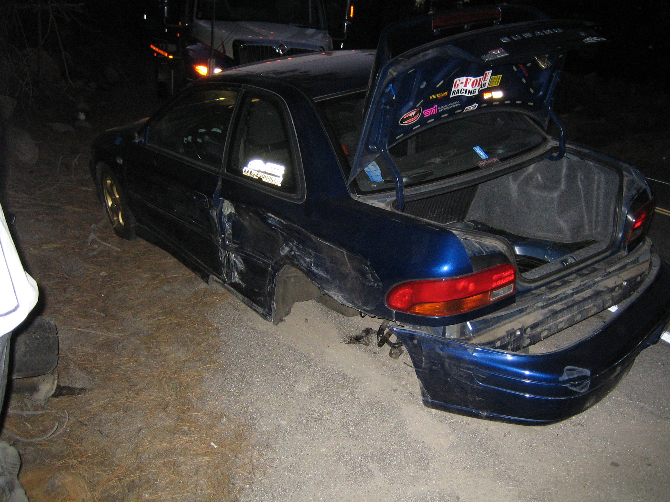 Yeah, I wish there'd been a pic of the inside of the trunk. The inner fender is split open like a soda can. Even the trunk liner, which isn't actually held in by fasteners, was ripped because of the speed of the impact.