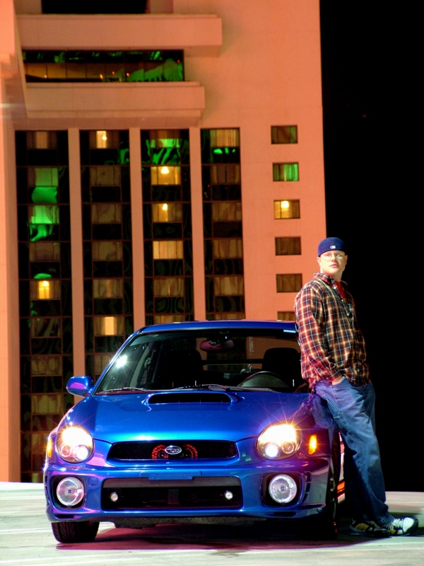 That one's not so bad. I figured I've got a ton of pics of my car, but none w/ me in them, so why not. You were the one that wanted me to "lay in front of the car" (what's up w/ that?)... thank god I only sat down next to it... who knows what punishment I'd recieve in photoshop otherwise.
