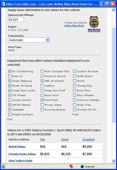 Regardless of what KBB thinks, an equivalent year, mileage, and equipment RS will sell for more than a forester. Just check listings on nasioc and rs25- you won't find an RS that's asking much less than retail. Same thing on the classified sites like cars.com and autotrader.com. And dealers are pricing 2000/2001 RS higher than some bugeye WRXs.