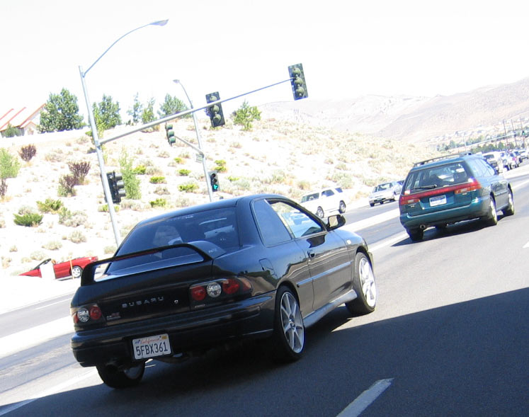 Saw a crazy bugeye WRX today as I was leaving Jack in das Box. Silver, had a *crazy* body kit on it (Wings West perhaps?) with a giant wing. He gave me a wave, I waved back. We need to figure out who that is... that might be the car that's "running around Reno w/ $25k into it".