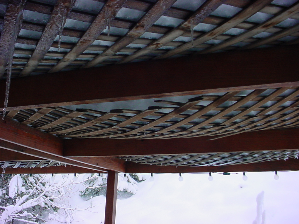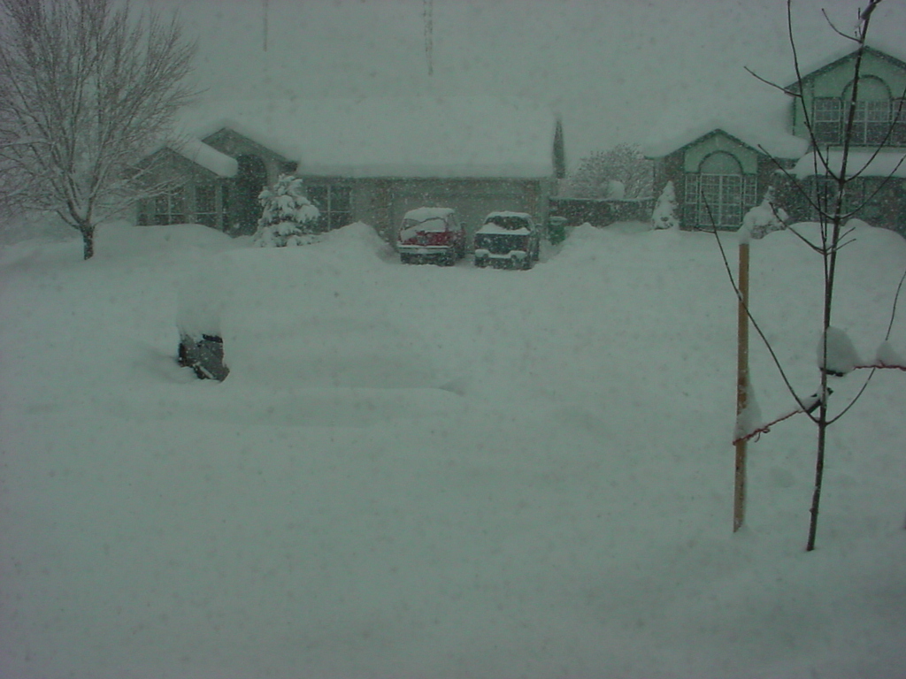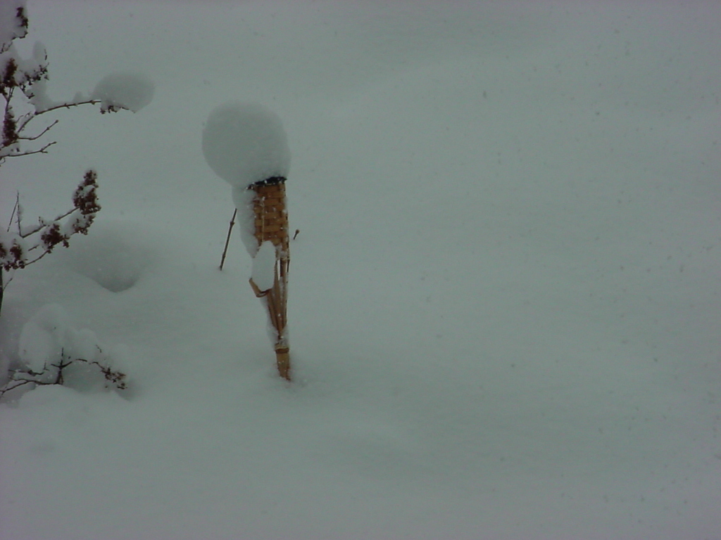 This snow today is amazing...It could be more than the last big storm, but I can't be sure. My patio cover is about to buckle from the weight, ( I think the lattis(sp?) is going to break through only, no big deal. You can see the depth of the snow on my 5' tall tiki torches.